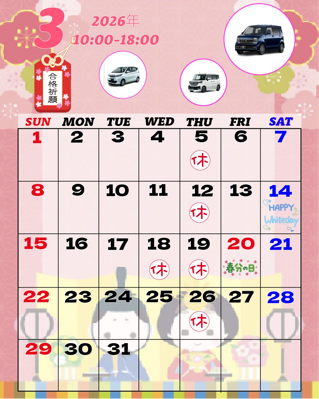 こんにちわ🎶 早いもので怒涛の3月も今日で終わり💦 車屋の師走は3月なんです!! これもひとえに皆様のお陰様でございます!ありがとうございます😌 4月は弘前の一大イベント「弘前さくらまつり」!! 桜の開花予 …