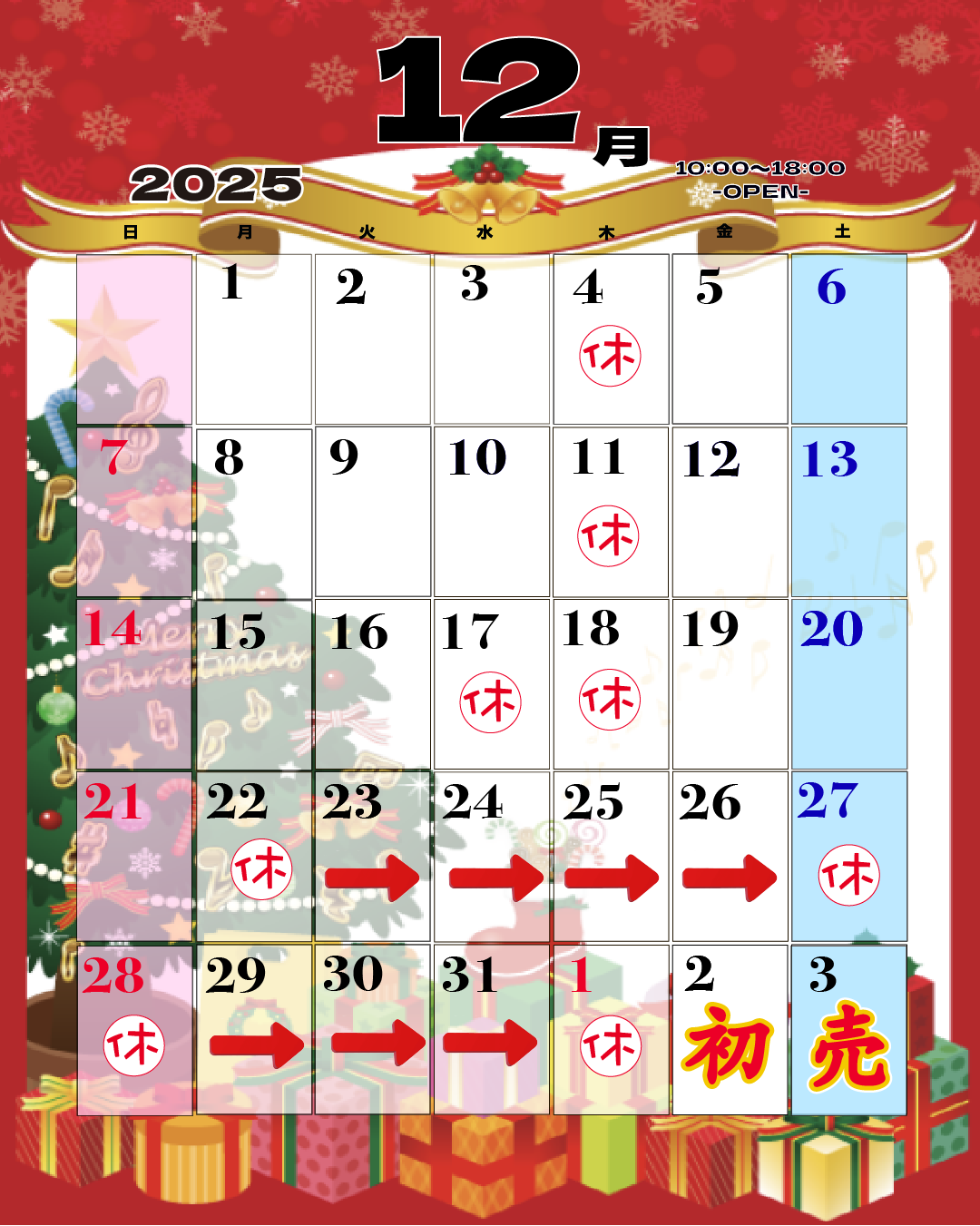 年明けは1月2日(金)から朝9時より初売りスタートです✨