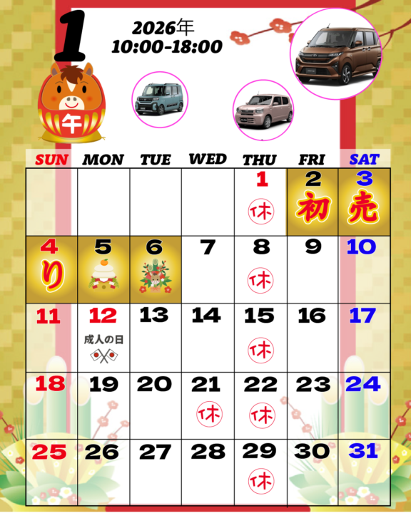 2026年1月の定休日です!!